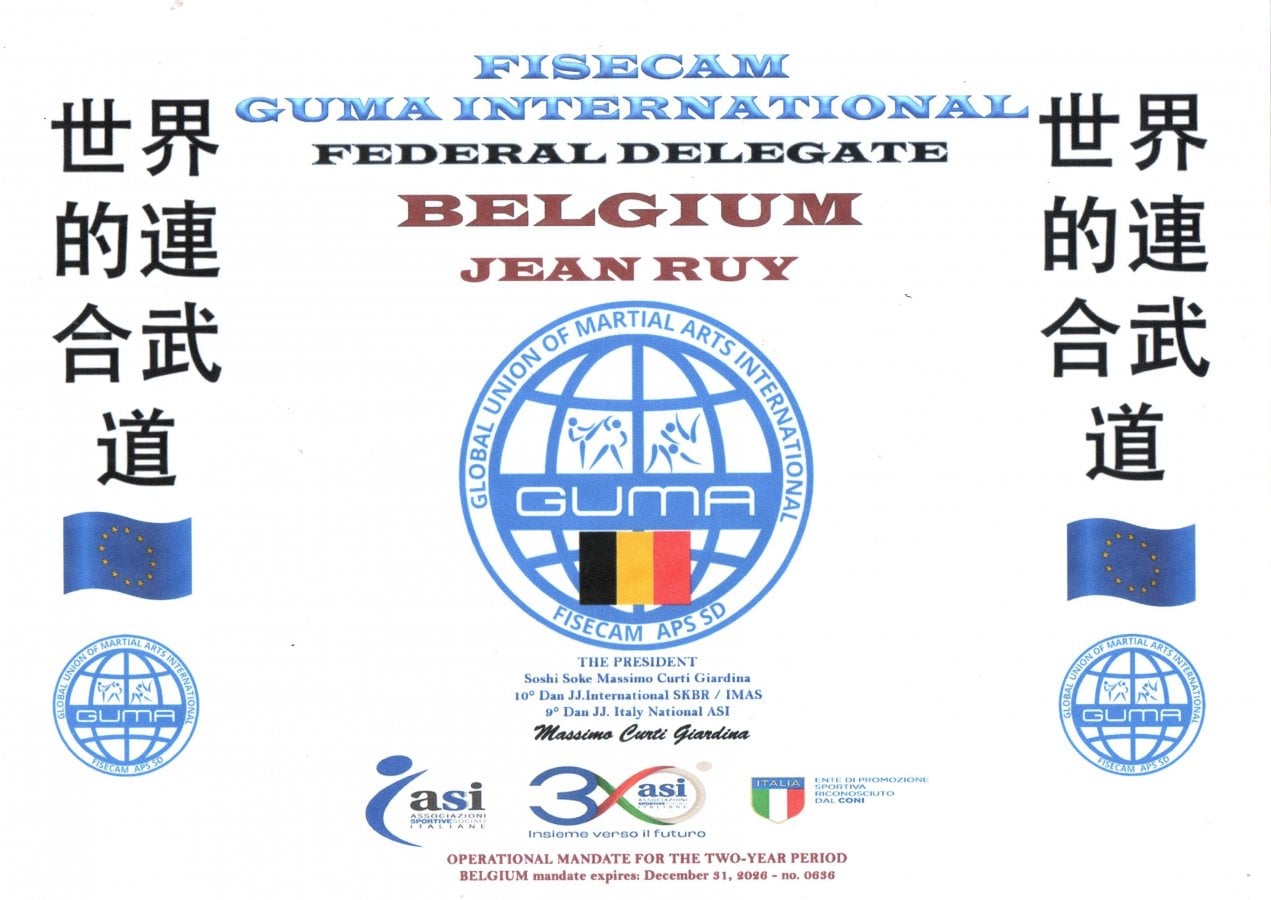 Shihan J.Ruy à été ce 5 octobre 2017, reconnu Soke 8°Dan de l'Iba Budo et de la Guma,représentant IBA Belgique et Président Guma Belgium.