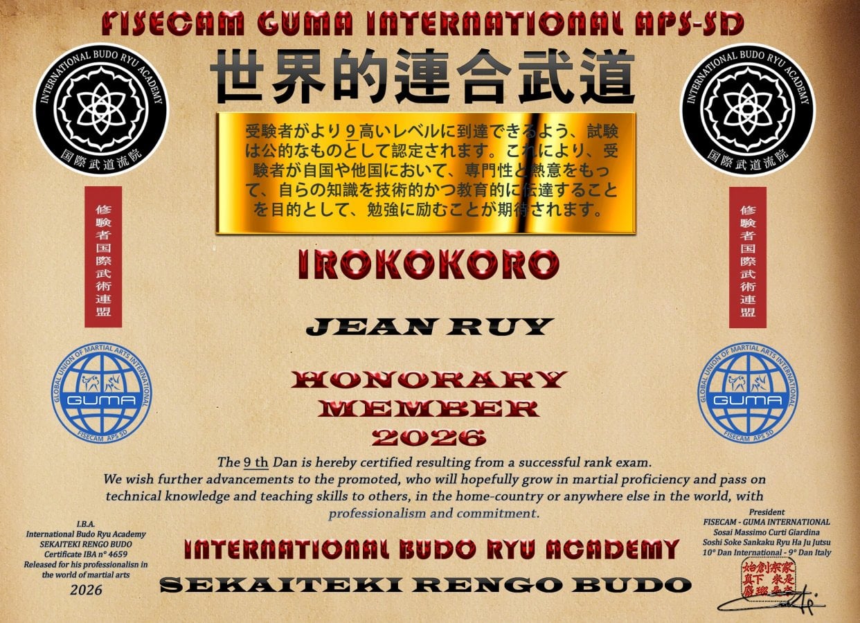 Shihan J.Ruy à été ce 5 octobre 2017, reconnu Soke 8°Dan de l'Iba Budo et de la Guma,représentant IBA Belgique et Président Guma Belgium.